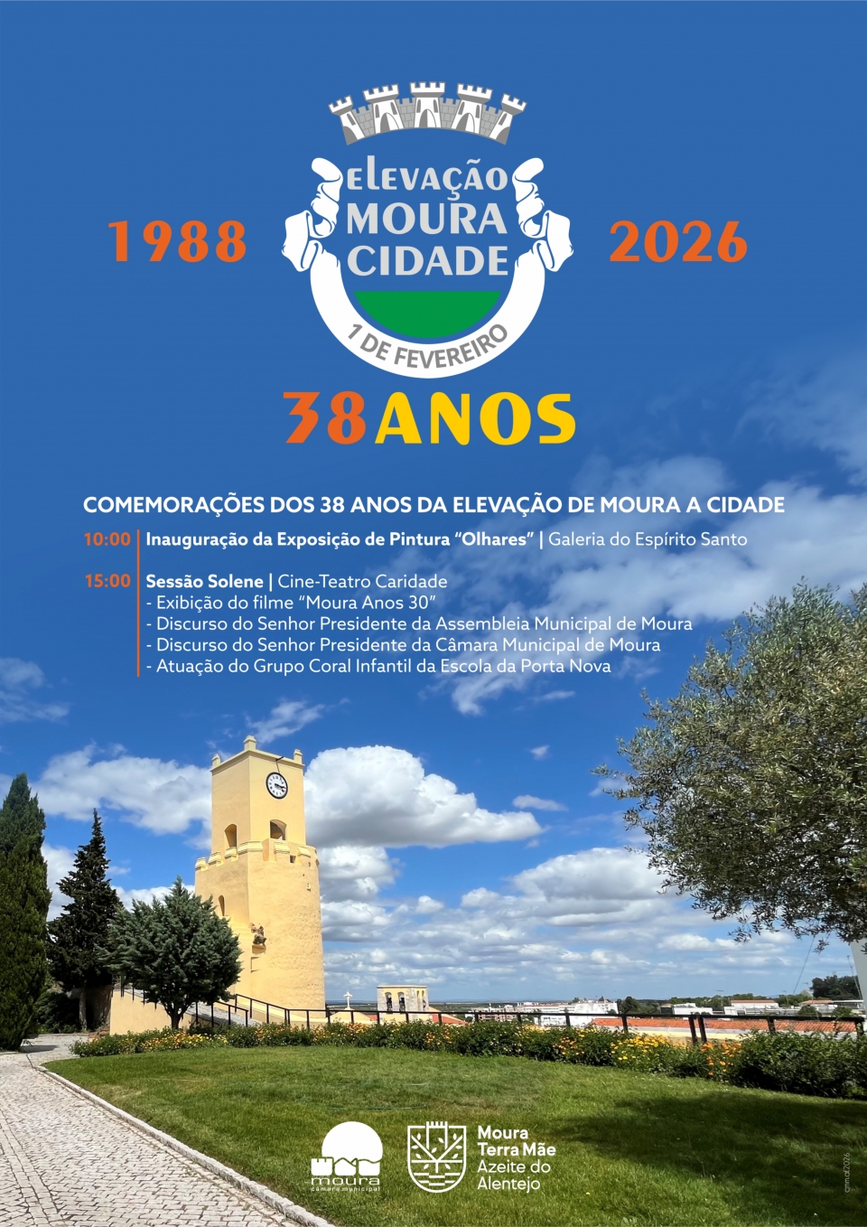 A Câmara Municipal de Moura vai assinalar a data, no domingo, 1 de fevereiro, com um programa que se inicia às 10h, na Galeria do Espírito Santo, com a inauguração da exposição “Olhares”, de João Sardica. À tarde, a partir das 15h, no Cine-Teatro Caridade será exibido o filme “Moura Anos 30”, seguindo-se as intervenções do Presidente da Assembleia Municipal de Moura, André Gonçalves, e do Presidente da Câmara Municipal de Moura, Álvaro Azedo. A cerimónia termina com a atuação do Grupo Coral Infantil da Escola da Porta Nova.