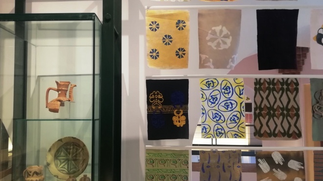 Inspiradas nos desenhos da cerâmica islâmica, foram desenvolvidas, por estudantes da Licenciatura em Design de Moda da Faculdade de Arquitetura de Lisboa, amostras têxteis tingidas e estampadas, com recurso a diversos materiais e técnicas, “numa leitura ocidental sobre uma representação gráfica de cultura ancestral e islâmica”. Em algumas peças o destaque vai para o desenho da cerâmica, e noutras, para a sua simbologia, também alvo de estudo.