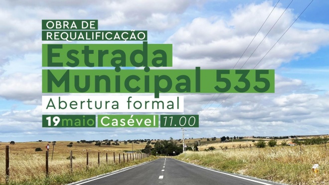 A Câmara Municipal de Castro Verde vai assinalar este domingo, dia 19, pelas 11h00, o fim das obras de requalificação da Estrada Municipal 535 (EM535), com o descerramento de uma placa. Esta via faz a ligação entre Castro Verde, Casével e ao limite do concelho, na Estação de Ourique. O investimento municipal é de um milhão e 300 mil euros, segundo comunicado da autarquia.